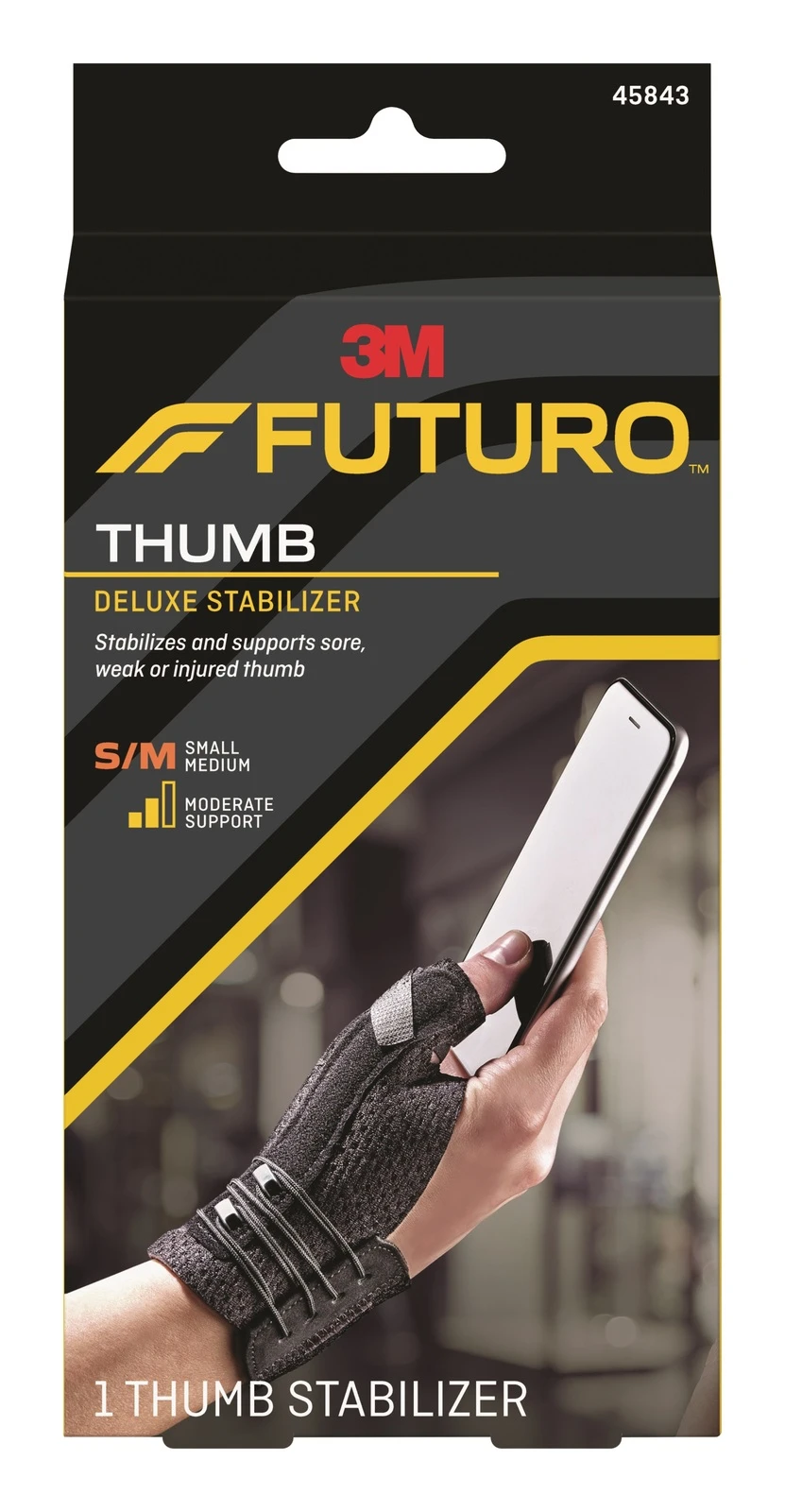 The FUTURO™ Deluxe Thumb stabiliser delivers essential support to your thumb, so you can focus on the task at hand–whether that’s texting, gaming or gardening. This thumb stabiliser features two supportive stays and adjusts for a customisable fit. When your thumb hurts, it’s hard to think about anything else–so slip on the FUTURO™ Deluxe Thumb stabiliser for extra support.