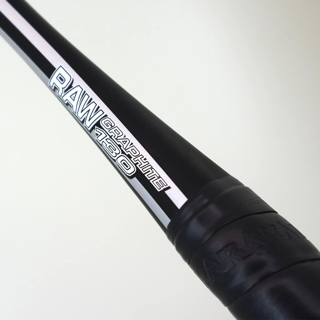 The 3rd weight option is the Raw 130. This racket has 100% graphite construction with long strings and open throat, updated this year with attractive new artwork.