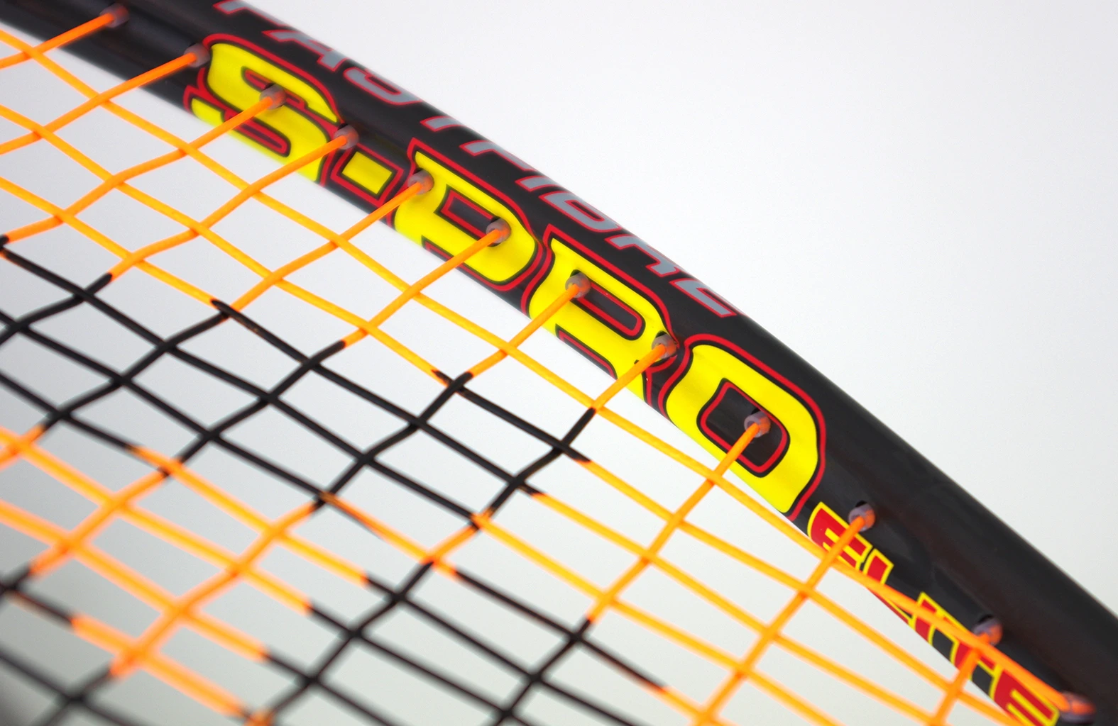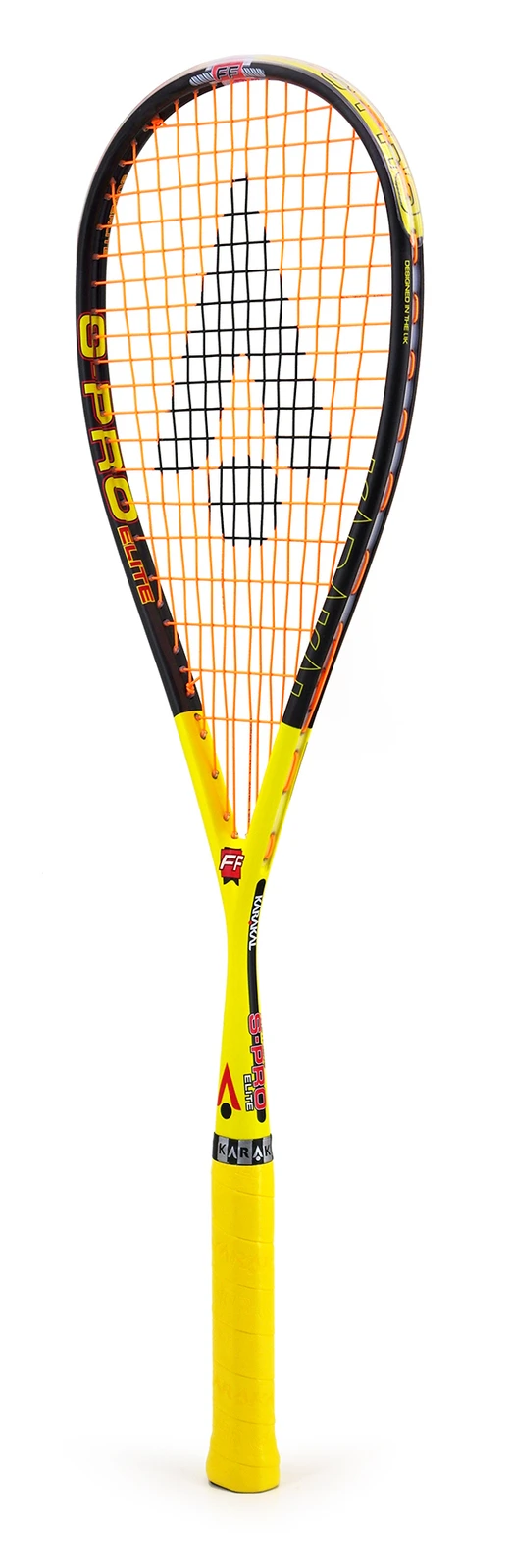 Our aim with the Pro series squash rackets was to create a stand out frame that was easy to identify on the court as ours, and was designed with Professional players in mind, the new version of this racket has updated the artwork and we have tweaked the specs based on the feedback provided by our Pro Tour players to improve the playability. We have updated the artwork for the new season and added our Hot Zone strings in Orange, crystal clear grommet which allow the underlying decals to show through changing the look of the frame. Its basic architecture is designed around the S Series frames from our current range. The S Pro Elite has the same advantages as the S Series frames with a straightened frame profile to improve power and increase the sweet spot. The construction of this frame differs however as it is weighted and balanced to Pro specifications, the weight and balance have been adjusted to make a more evenly balanced frame. The weight and balance of these rackets coupled with the new Fast Fibre technology means the racket returns to shape 10% faster than conventional layups allowing you to create unprecedented levels of power. With the environment in mind all our new top end rackets now come with a Full Bag Eco Cover, made with soft Eco fleece material, which is 100% recyclable.It is of course fitted with the No. 1 Karakal PU Super Grip