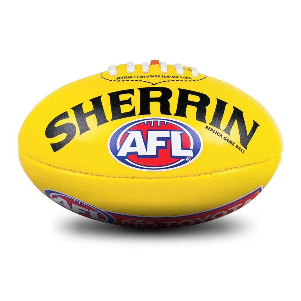 The AFL Replica Ball is ideal for those footy fans looking to have a kick with mates down at the local oval or in the backyard. Made from a PVC material, it is of recreational quality and suited to grass surfaces only.