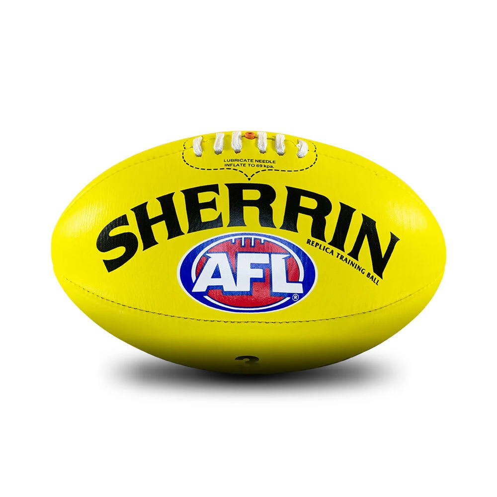 The AFL Replica Training ball is a full-grain leather footy designed for the training ground. Made from durable imported leather the AFL Replica is designed to stand up to those countless training drills and kick-to-kick sessions, performing consistently each and every time.