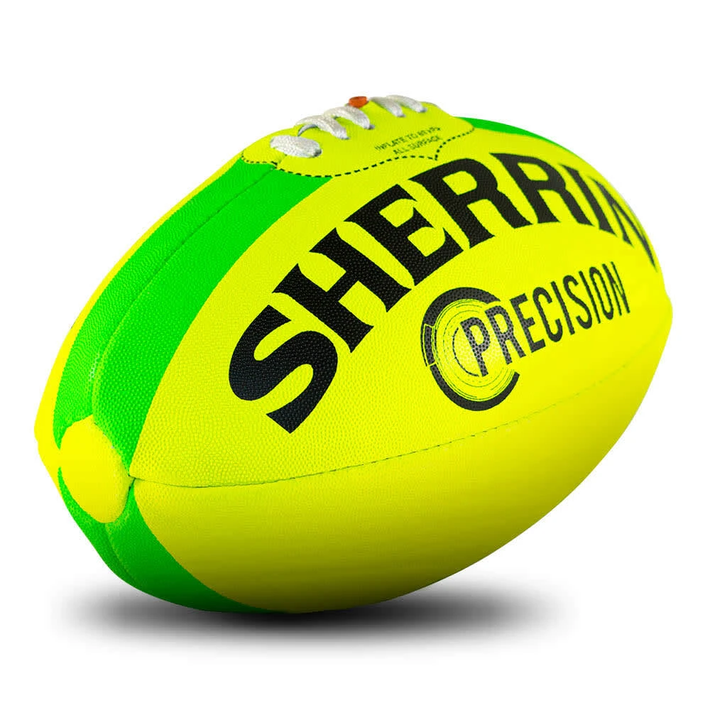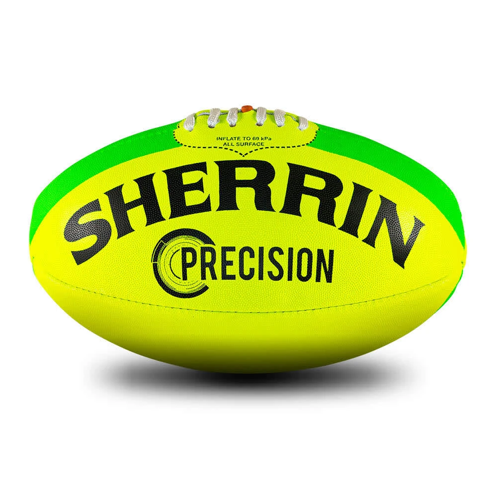 Learn to kick like the pros with the Precision football. Perfect for young players looking to improve their kicking game, Precision is designed with a larger sweet spot area so that players can visualise the ideal impact zone when kicking the ball. The additional spin line provides guidance on the correct spin pathway of the ball giving players immediate feedback when kicking towards their chosen target. A must-have training ball for any player or club.