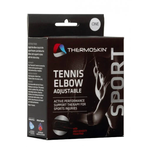 The Thermoskin Sport Tennis Elbow provides compression, support and warmth for weak or injured elbows during periods of increased activity. Tennis Elbow is a painful inflammation of the tendon on the lateral aspect of the elbow caused by the pull of the muscles, which extends to the wrist and fingers. Tennis Elbow effects 1-3% of people aged between 30 and 50, more commonly in men than women.