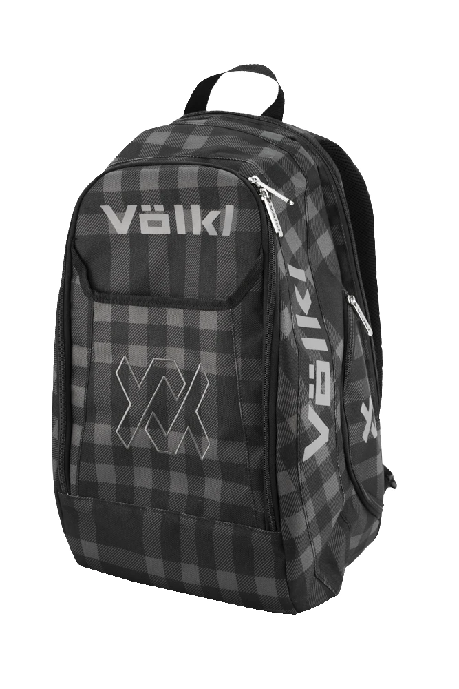 The Volkl Team Plaid Backpack features – one racquet compartment suitable to carry 1 tennis racquet, one large zipped pocket for carrying court essentials and 2 side zipped pockets.