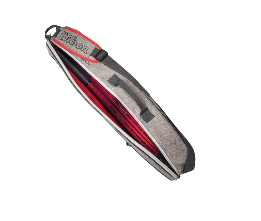 - Wilson’s Team 3-Pack is a great bag for club players who need space for two-to-three tennis rackets, a change of clothes, and a few other pieces of gear. In addition to the main compartment, there’s a large outer zip pocket perfect for stashing extra balls, grips, and snacks. Carry it from the top handles or padded shoulder straps.