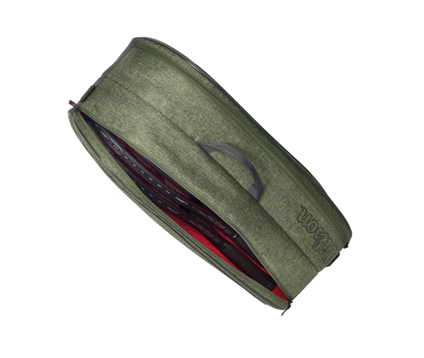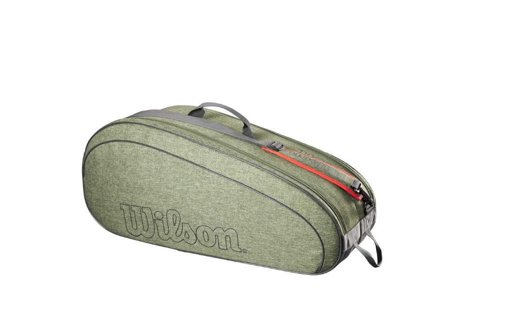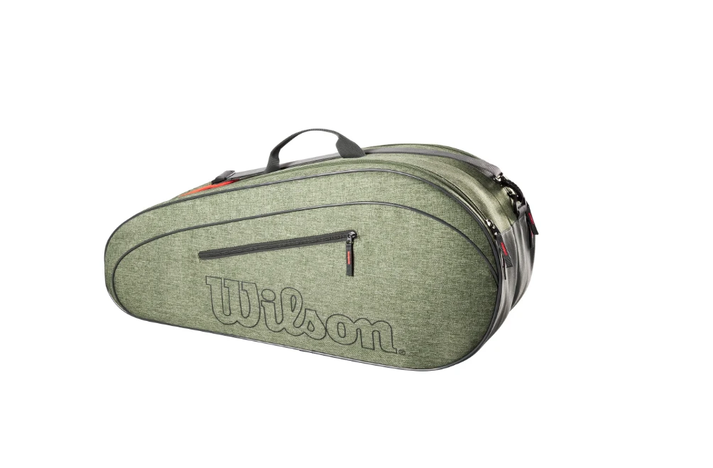 - Wilson’s Team 6-Pack is a great bag for club players who need space for multiple tennis rackets, a change of clothes, and a few other pieces of gear. The two main compartments hold up to six rackets, plus there’s a large outer zip pocket perfect for stashing extra balls, grips, and snacks. Carry it from the top handles or padded shoulder straps.
